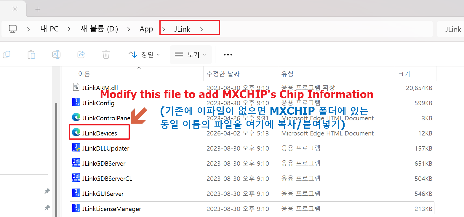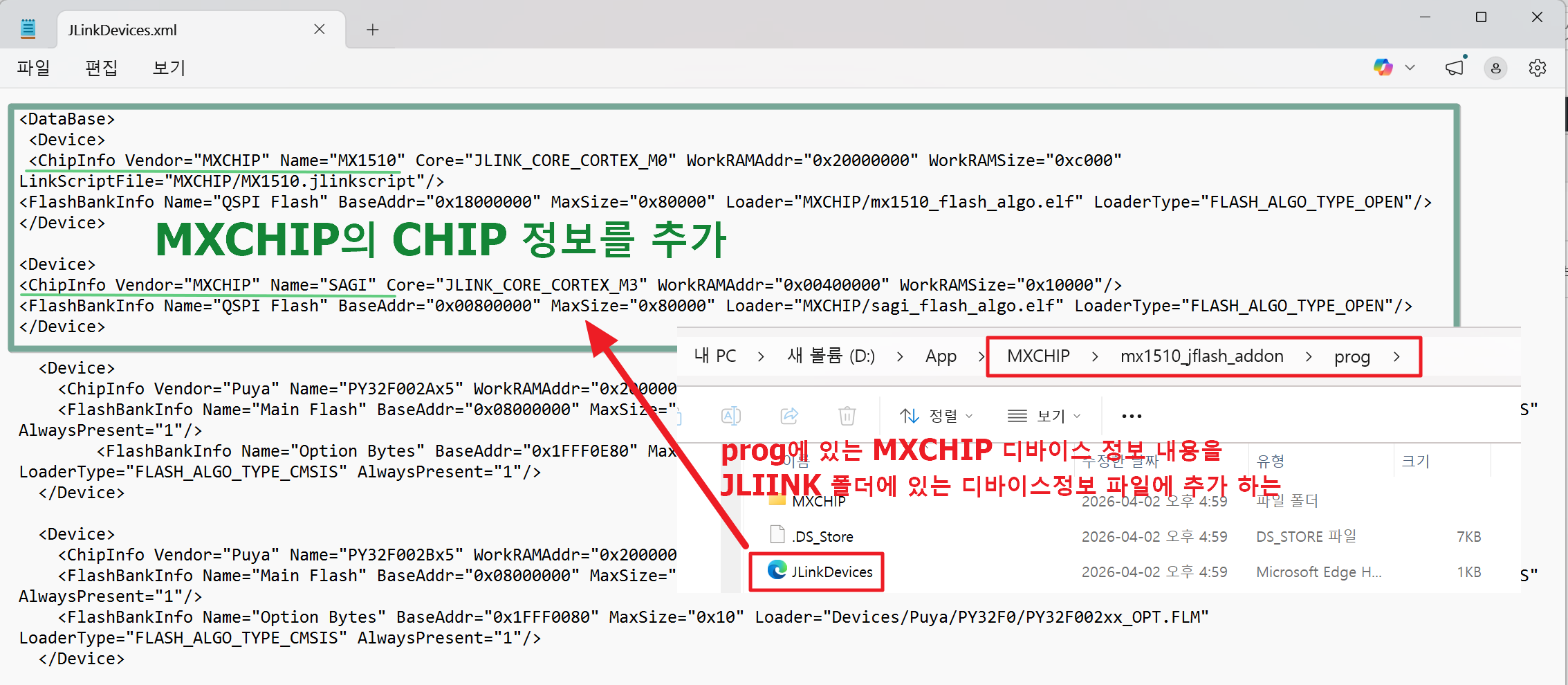 (3) Modify the JLinkDevices.xml file in the jflash directory and add two MXCHIP’s “Device” descriptions: