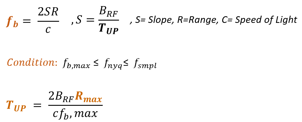 Increasing chirp-up-time, T_UP allows a longer maximum measurable range by reducing the beat frequency within ADC constraints.