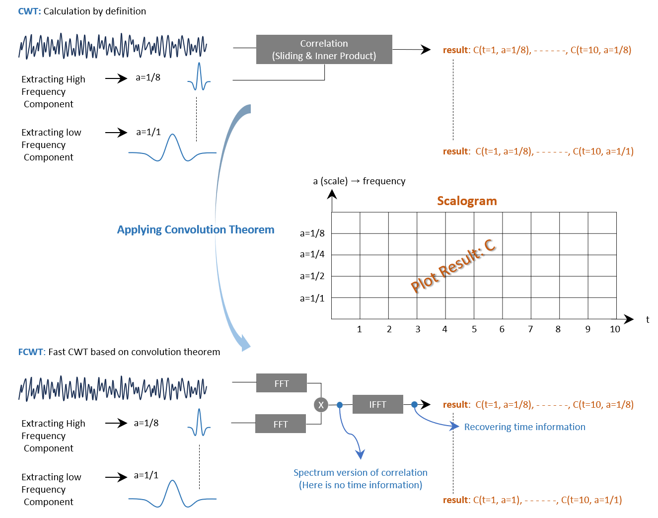 -.Illustration: scalogram (time vs scale vs magnitude)